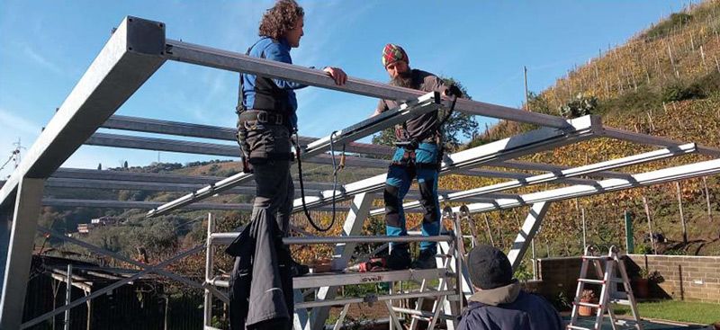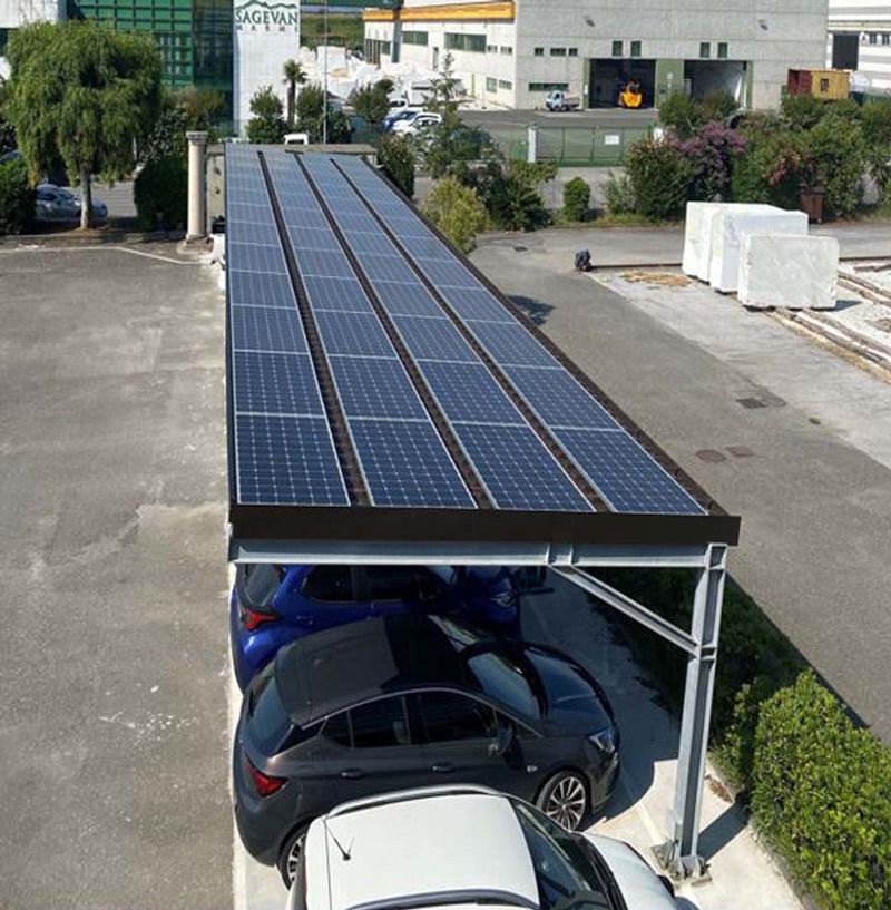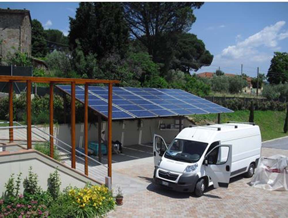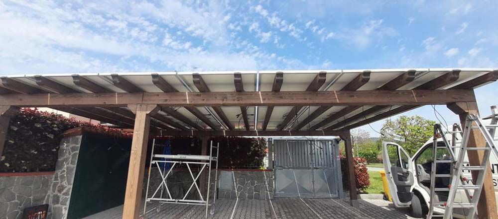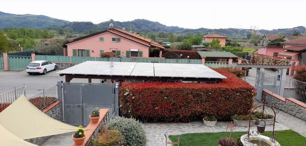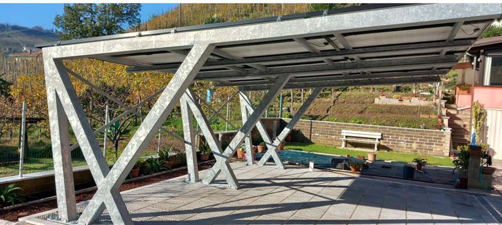 Quando una abitazione presenta un tetto di dimensioni contenute o occupato da lucernari e camini, spesso si sceglie di installare l’impianto su una tettoia ombreggiante e/o una copertura per auto. Nel caso in cui la tettoia sia già presente, è importante verificare la tipologia di montaggio.